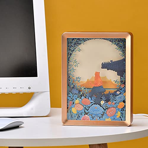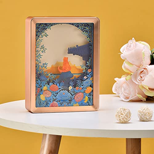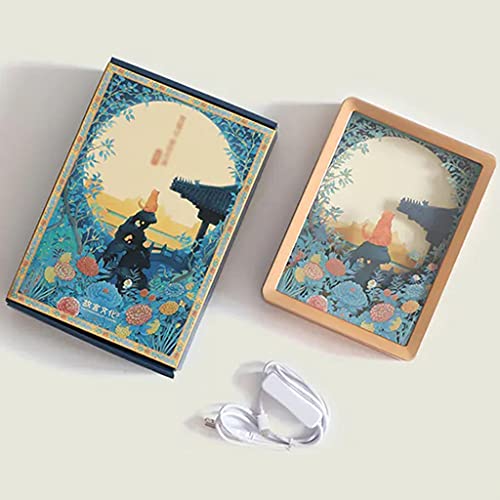 3D Paper Carving Night Lamp 3D Paper Sculptures Lamp Papercut Light Boxes Art Decoration Shadow Box Led Light Gift for Home Bedroom Bedside, Decorative Mood Light for Living Room,B